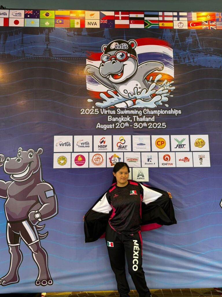 La atleta de natación con Síndrome de Down, parte de la Federación Mexicana de Deportistas Especiales (FEMEDE), y actualmente representa a la frontera en el Virtus Swimming Championships 2025, que se celebra del 20 al 30 de agosto en Bangkok, Tailandia.