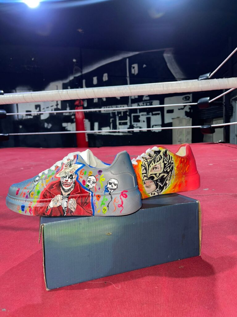 Roberto comparte los detalles sobre los tenis realizados. “Simplemente tengo una breve plática con el cliente, le preguntó específicamente que le gustaría en los tenis. A veces me dan independencia creativa y pues ahí me la ingenio como puedo, con ideas artísticas”, comparte.