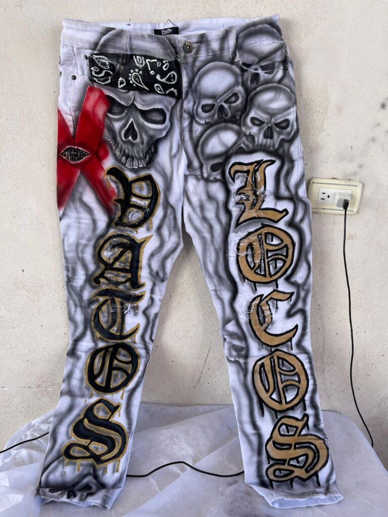 Su estilo se ha caracterizado por plasmar elementos y figuras juarenses, desde luchadores locales hasta íconos como Juan Gabriel o la famosa “X”. Además de sus murales, Roberto ha llevado su talento a lugares poco convencionales, como tenis personalizados, sombreros, pantalones y hasta en máscaras de luchadores.