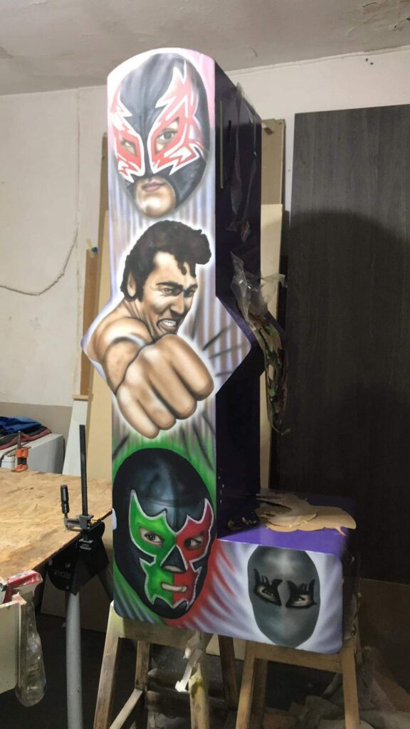 Entre sus trabajos más destacados se encuentran piezas creadas para Pagano, a quien le pintó un sombrero estilo pachuco que utilizó en Worlds Collide, además de murales realizados en el gimnasio Kalaka y vestuario usado en Triplemanía.