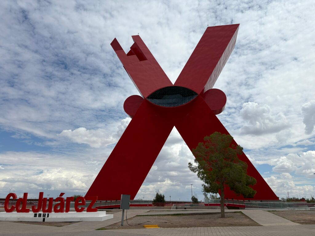 La famosa “X” es de color rojo, justo a la mitad tiene un ventanal negro, al interior cuenta con un elevador para poder observar la frontera desde una visión panorámica. Según Sebastián, la “X” es una representación de mestizaje, como un encuentro de las culturas españolas e indígenas en México.