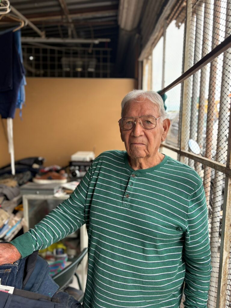 Naim Hermosillo fue uno de los cofundadores de este lugar y desde entonces se mantiene firme en esta mercado con su puesto de ropa, “aquí no se podía ni caminar, estaba lleno completamente [….] y ahorita ya hay mercados por donde quiera y este fue uno de los primeros”, comparte Naim recordando los años en qué comenzó a vender en este mercado.