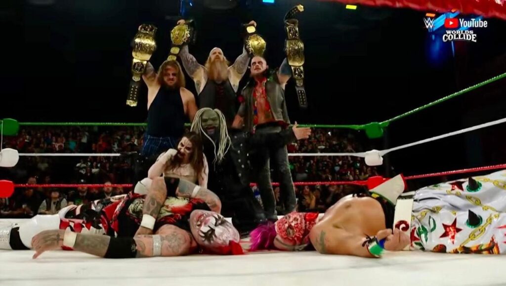 Sin embargo, la celebración fue interrumpida. Al final de la pelea, The Wyatt Sicks, grupo de la WWE, irrumpió en el escenario para atacar a los mexicanos, enviándoles un claro mensaje: ellos serán los próximos en ir tras los campeonatos de la AAA.