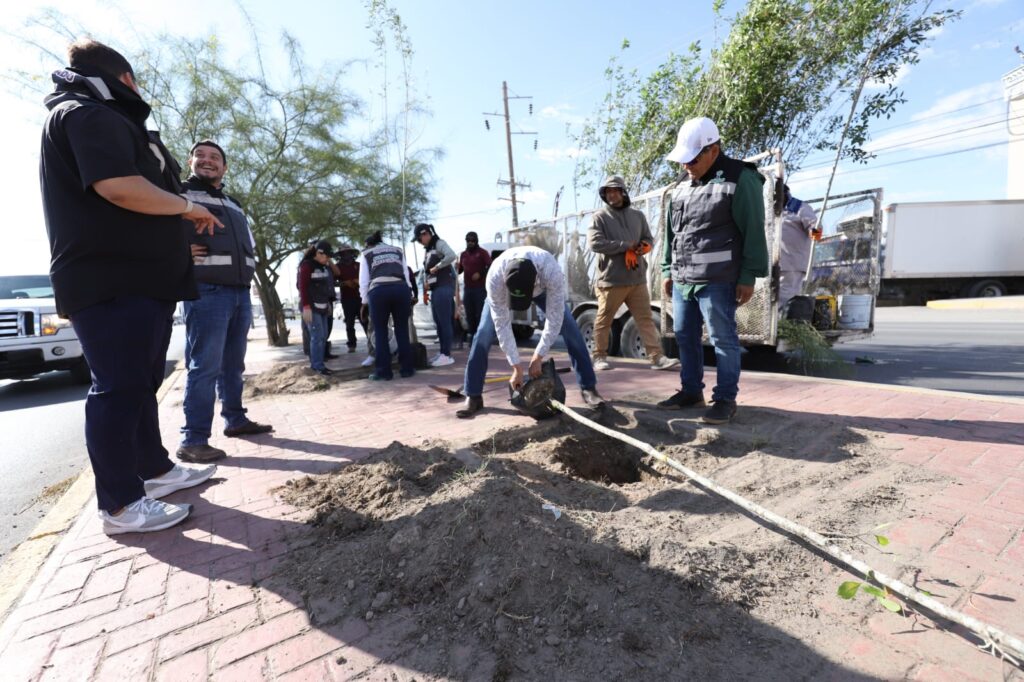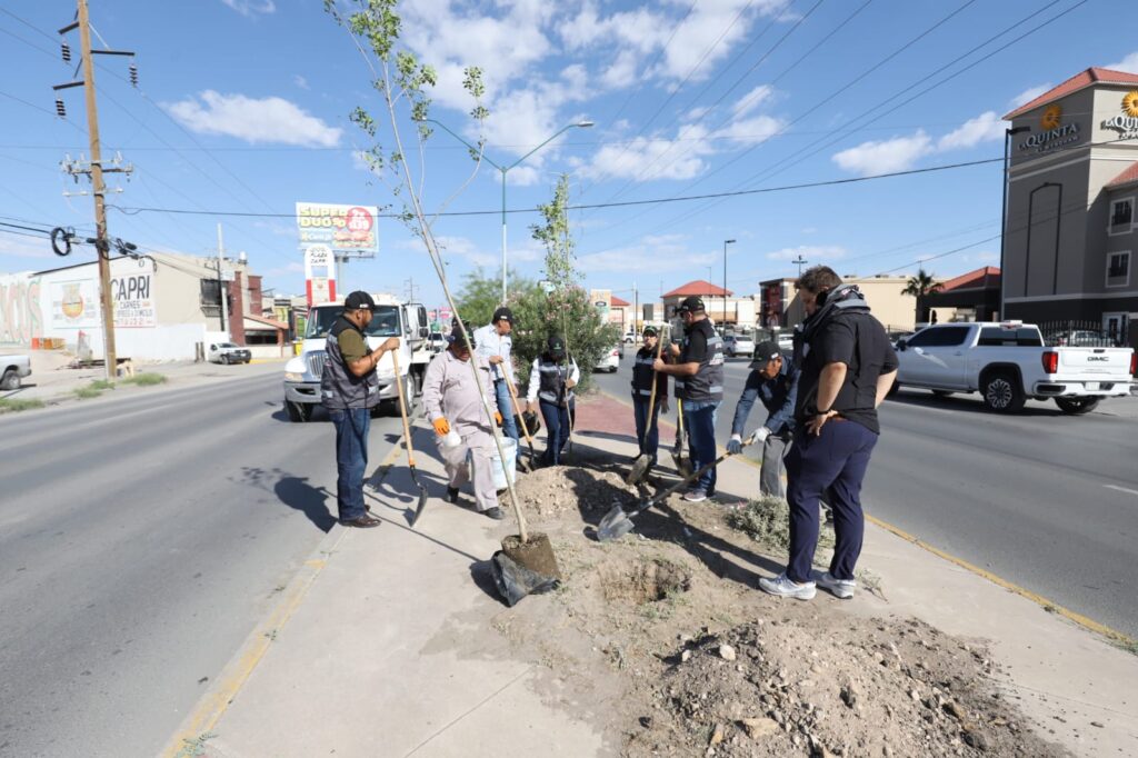 Un total de 55 árboles se plantaron en un tramo del camellón central de la avenida Ejército Nacional, como parte de una jornada de forestación urbana que busca mejorar el entorno ambiental y estético de la ciudad.