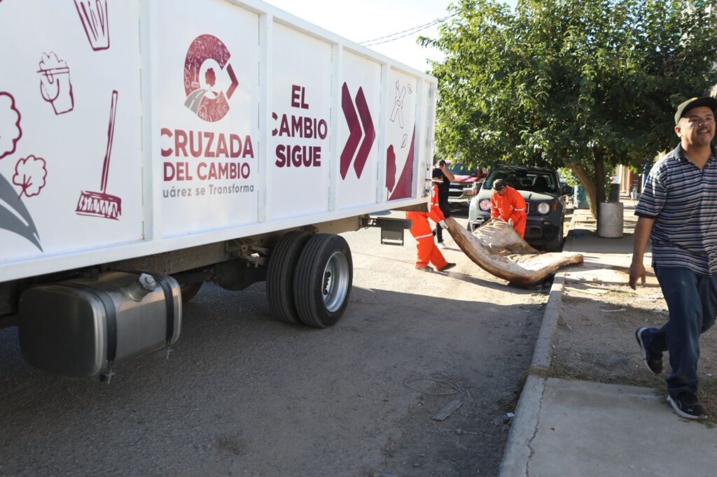 El alcalde Cruz Pérez Cuéllar encabezó este sábado el inicio del programa Mega Destilichadero en la colonia Hidalgo, una nueva estrategia municipal para facilitar a los juarenses la eliminación de residuos voluminosos que no son recolectados por los camiones tradicionales.