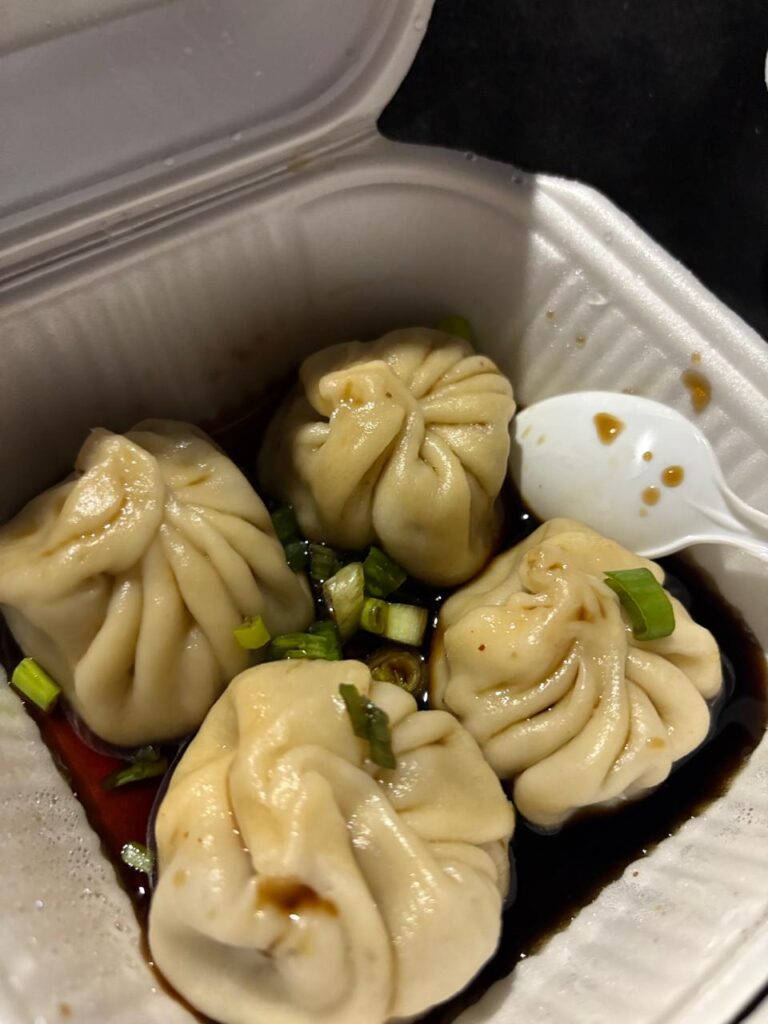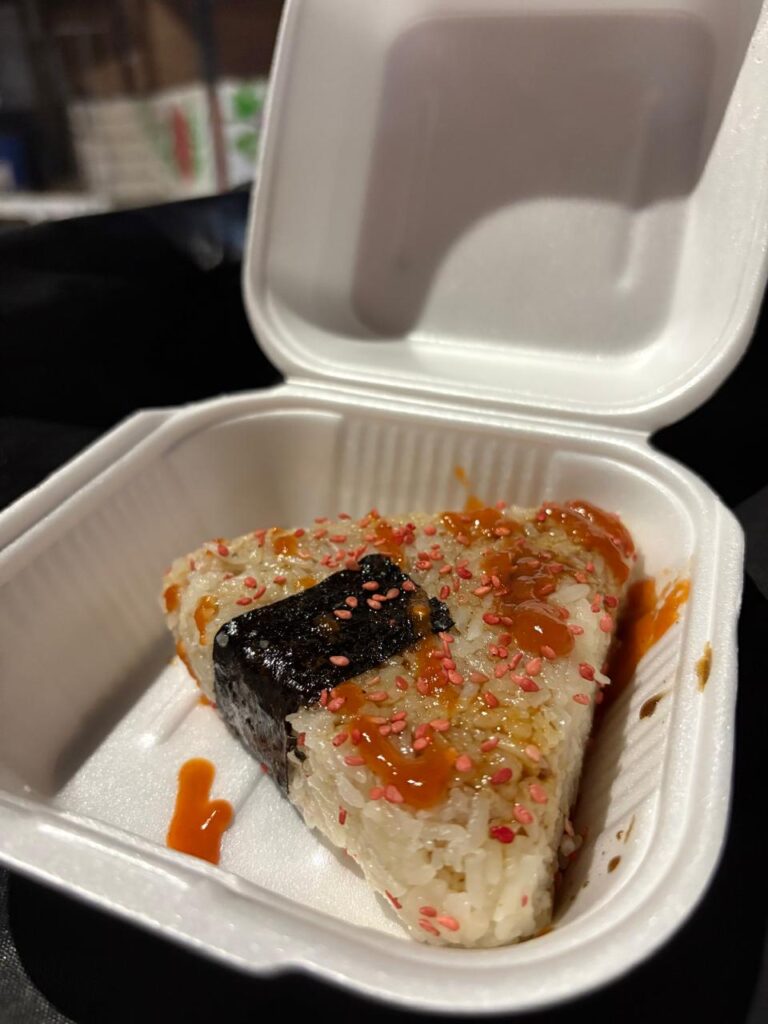 Carlos estudió gastronomía, por lo que ha usado eso para añadir su propio sazón a estas recetas asiáticas. Los dumplings son bolsitas de pasta rellenas de carne y especias, mientras que los onigiris son triángulos de arroz con surimi y queso crema y los sushi burritos una creativa mezcla envuelta en alga como si fuera una tortilla.