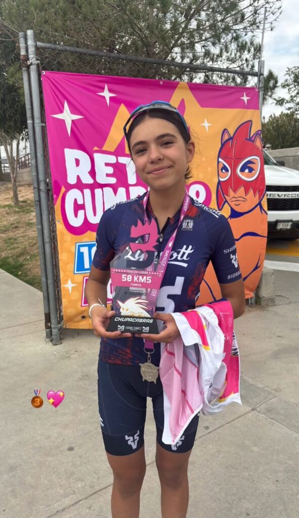 Ana Regina Morales de tan solo 13 años, mejor conocida como “Sharky” en el deporte del ciclismo, ganó el tercer lugar en la carrera “Chupacabras 2025” edición número 29.