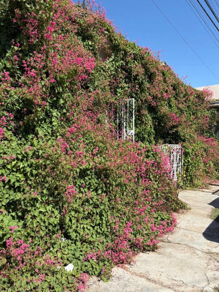 El Miguelito florece entre junio y julio. Llenando el lugar de color para despedirse en invierno y volver a brotar al siguiente año. Lo más curioso es que se enreda de manera natural en la casa, sin necesidad de malla, decorando por sí sola la vivienda.