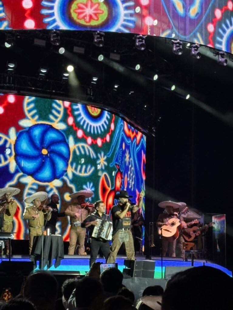 Ante un estadio lleno, El Potrillo dio inicio al concierto con “No Me Voy a Rajar”, acompañado de un público que esperaba con emoción poder cantar junto a él.