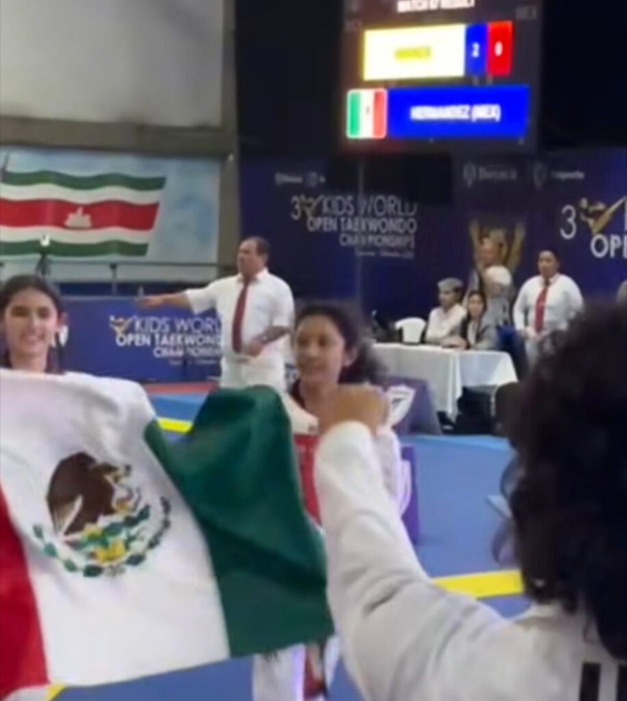 Representando a Juárez con el equipo PAE Taekwondo, Ana Lucía no solo conquistó la medalla de oro, sino que además tuvo el noble gesto de invitar a su rival a dar la vuelta olímpica junto a ella, portando con orgullo la bandera de México.