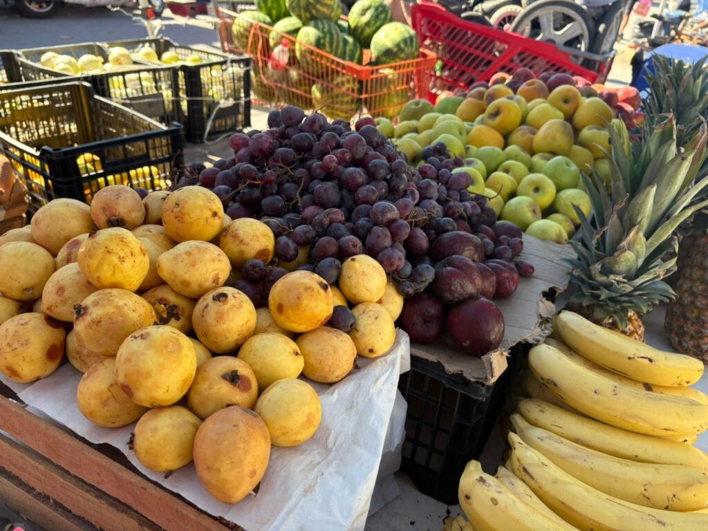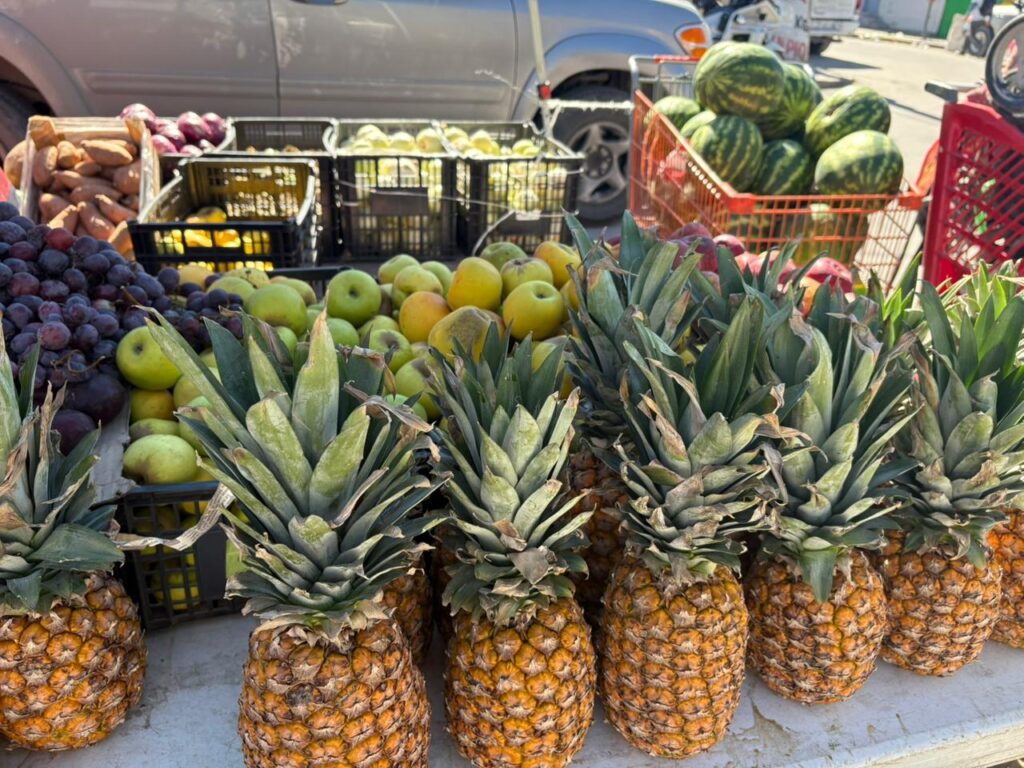 En su puesto se pueden encontrar productos de la región como manzana, chile colorado, cebolla, melón, sandía, pepino y productos de otros estados como piña, plátano y papaya.