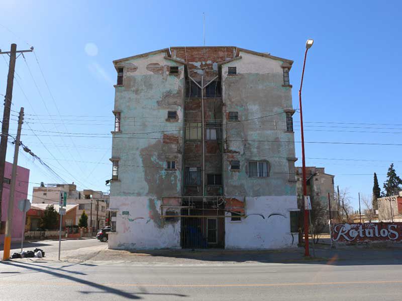 Este conjunto de ladrillo, con muros gruesos y una estructura muy sólida, fue el primer edificio habitacional vertical construido en Ciudad Juárez, y ya supera los 70 años de historia.