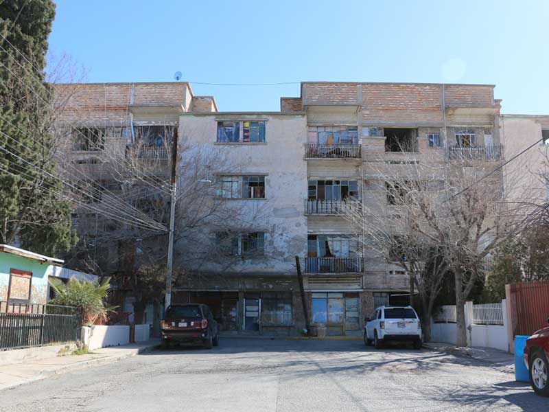 Este conjunto de ladrillo, con muros gruesos y una estructura muy sólida, fue el primer edificio habitacional vertical construido en Ciudad Juárez, y ya supera los 70 años de historia