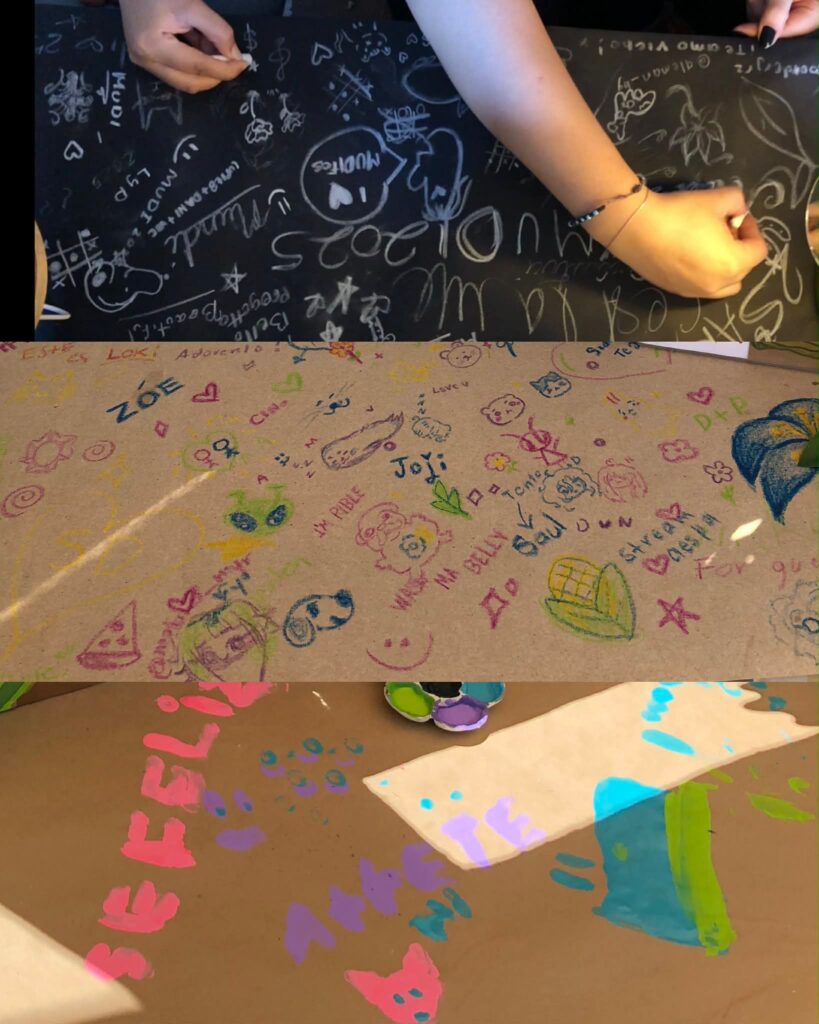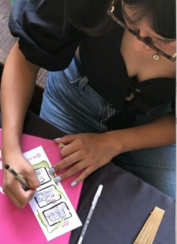 Jimena inició este proyecto en agosto de este año, inspirada por artistas extranjeros que veía en redes sociales. Sin embargo, decidió añadirle su propio sello al complementar la experiencia invitando a la gente a pintar mientras ella realiza sus bocetos.