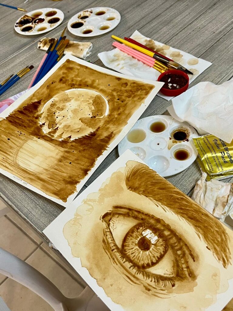 Recientemente, Valeria implementó en sus talleres la técnica de pintar con café, una propuesta muy accesible que demuestra que es posible crear arte con los materiales menos pensados. En el taller les enseña las bases para crear diferentes tonalidades del color café y cómo trabajar con luz y sombras para obtener resultados realistas.