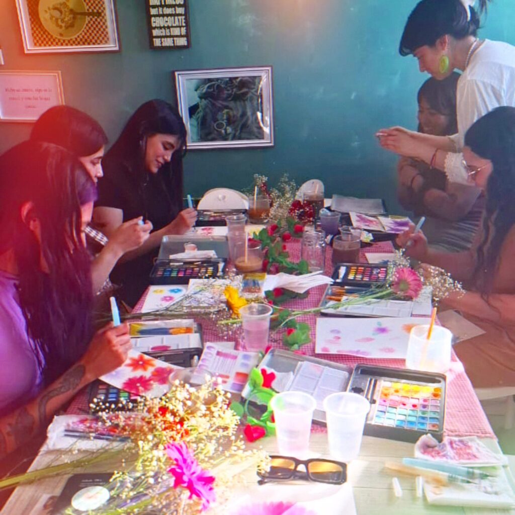 Valeria encontró en la pintura con acuarela su forma de expresarse artísticamente. Con la técnica que domina ofrece talleres donde crea un espacio de creatividad y expresión al que todos son bienvenidos, sepan pintar o no.