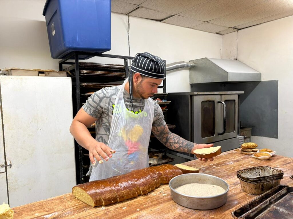 Aunque al principio solo se encargaba de vender y atender, poco a poco fue aprendiendo a hornear pan dulce con ayuda del dueño del lugar. Actualmente el joven cubano se desempeña como colaborador en esta panadería.