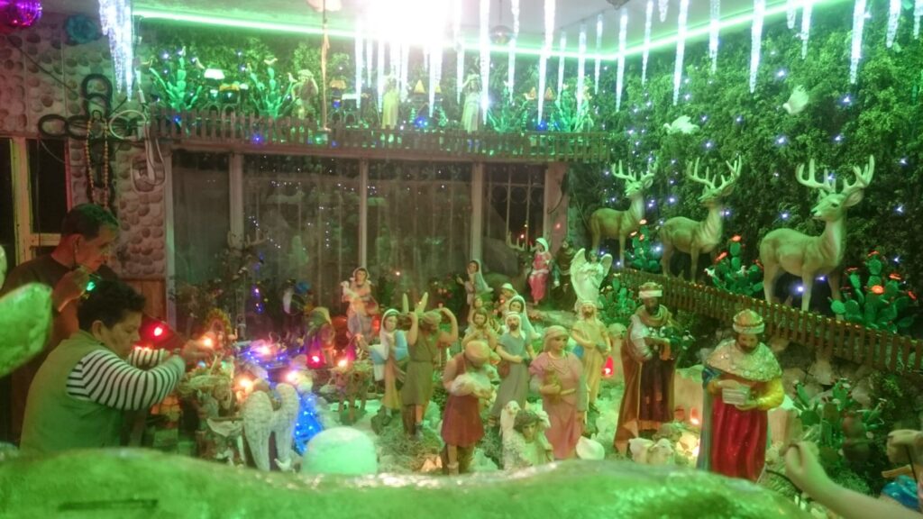 La señora María, quien se encarga de acomodar la mayoría de las piezas (pues esta tradición es algo muy personal para ella), se encuentra próxima a someterse a una cirugía en ambas rodillas, por lo que este año solo pudieron colocar un nacimiento más pequeño. No obstante, la tradición que han seguido por décadas es conocida por muchos juarenses que los han visitado en años anteriores.