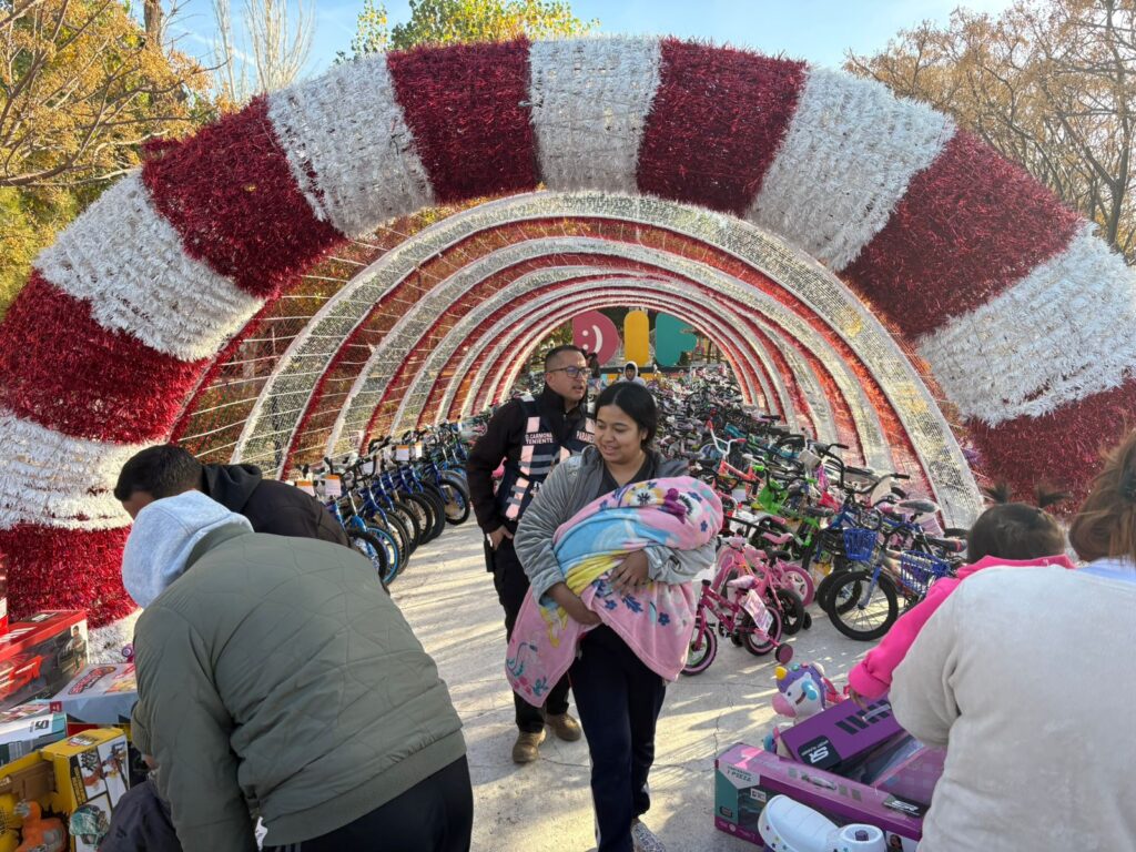 Desde hace días, algunos juarenses empezaron a formarse para ser de los primeros en recibir un regalo y poder escoger alguna bicicleta. Hoy, en un ambiente festivo, muchos niños acudieron en compañía de sus padres para recibir su obsequio.