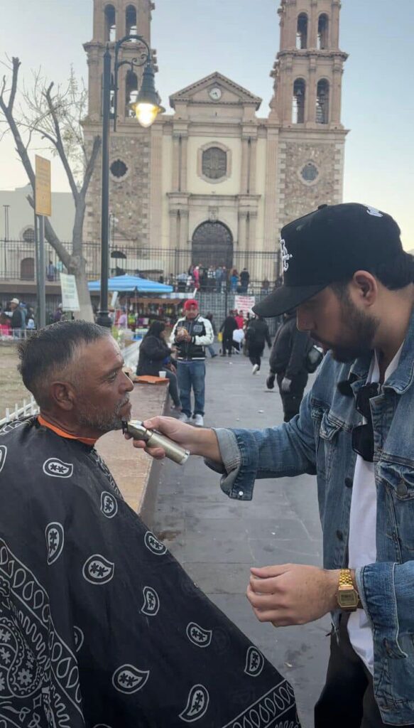 Los jóvenes se reúnen en diversos puntos de la ciudad con el objetivo de apoyar y motivar a la comunidad, en esta ocasión apoyaron a un joven barbero para regalar cortes de cabello en la zona centro.
