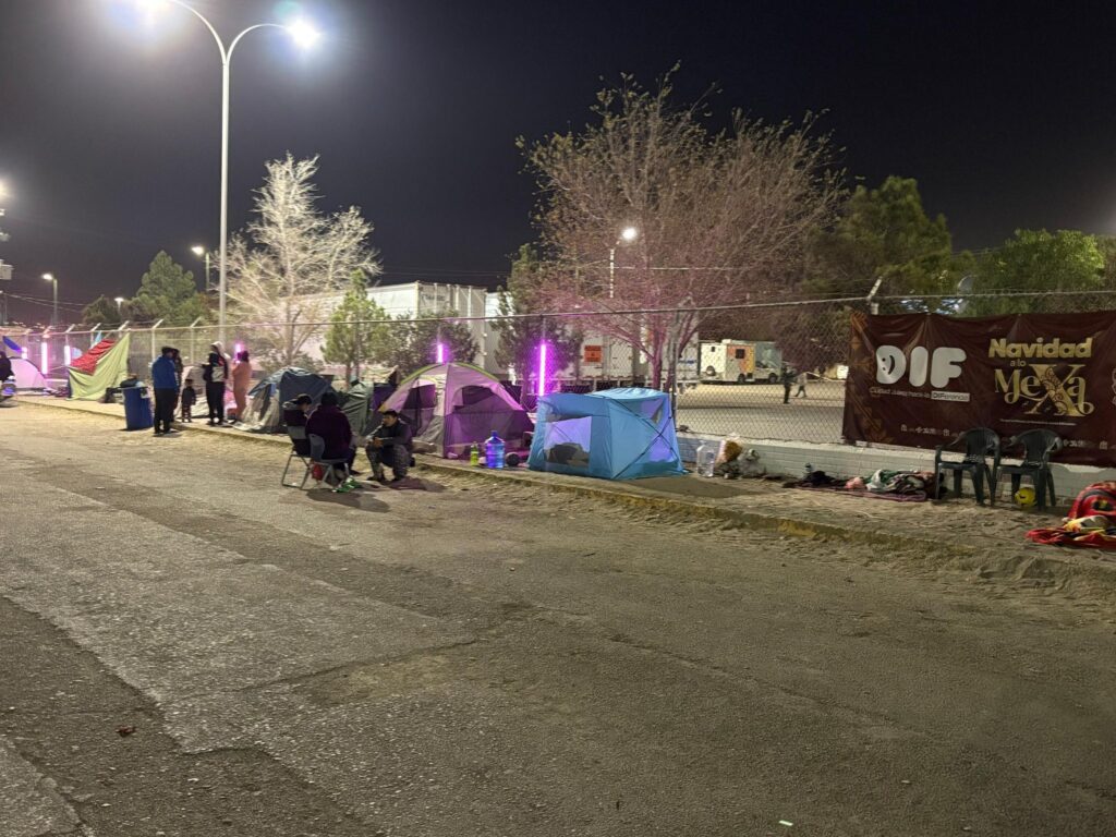 Familias juarenses han decidido acampar en el estacionamiento del Parque DIF en espera de recibir un regalo para sus hijos en la edición 2025 de “Santa Bombero”.