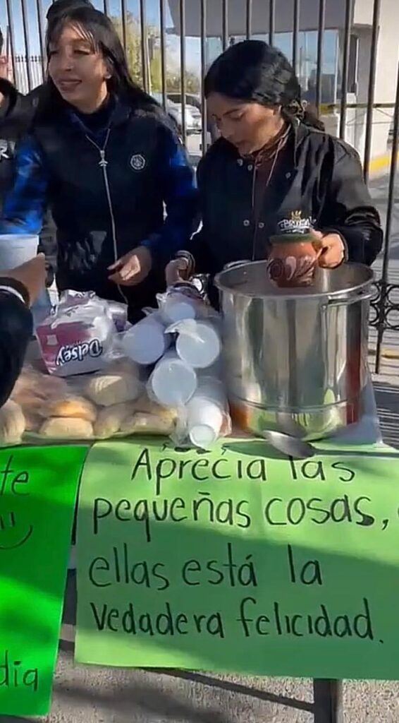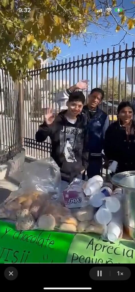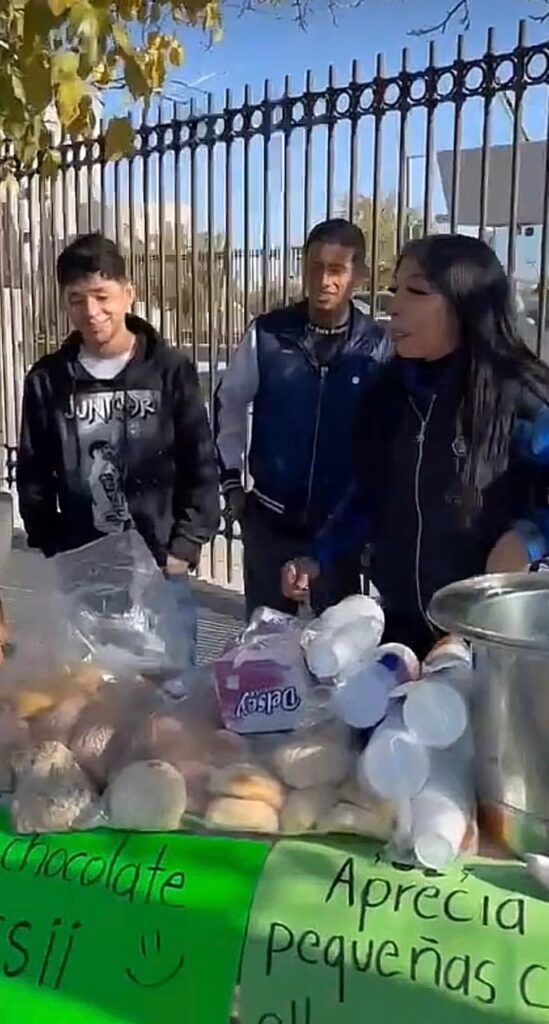 Un grupo de jóvenes de Las Torres tuvo la iniciativa de regalar pan dulce y chocolate afuera del IMSS 66.