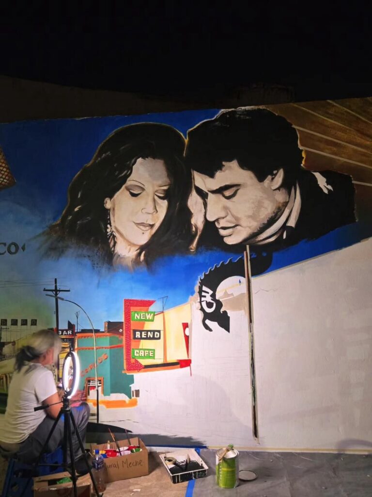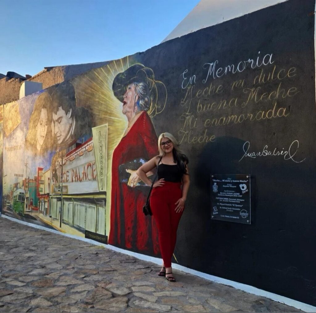 Uno de los proyectos que más le ha conmovido a Dayana fue un mural en la avenida Juárez, donde retrató a Meche, amiga de Juan Gabriel. Sobre esta experiencia comenta que “me sentí profundamente querida por las personas que se acercaron para compartir una opinión positiva, o para relatar una anécdota relacionada con sus vivencias en los años 60 o con mi Meche”.
