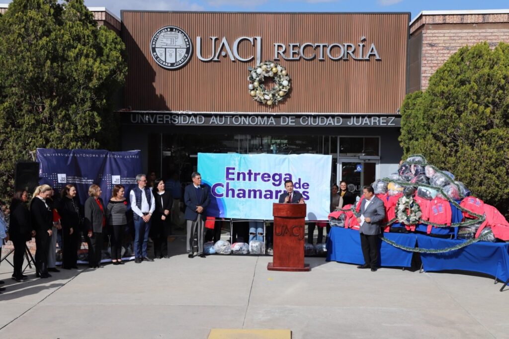 Comunidad de la Universidad Autónoma de Ciudad Juárez (UACJ) hizo la entrega de alrededor de 2,500 chamarras al DIF Estatal, como parte de la campaña “Juntos sin frío”.