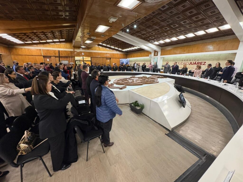 En esta ocasión la Presea Fray García de San Francisco fue entregada de manos del Presidente Municipal, Cruz Pérez Cuéllar, al director del Instituto Tecnológico de Ciudad Juárez.