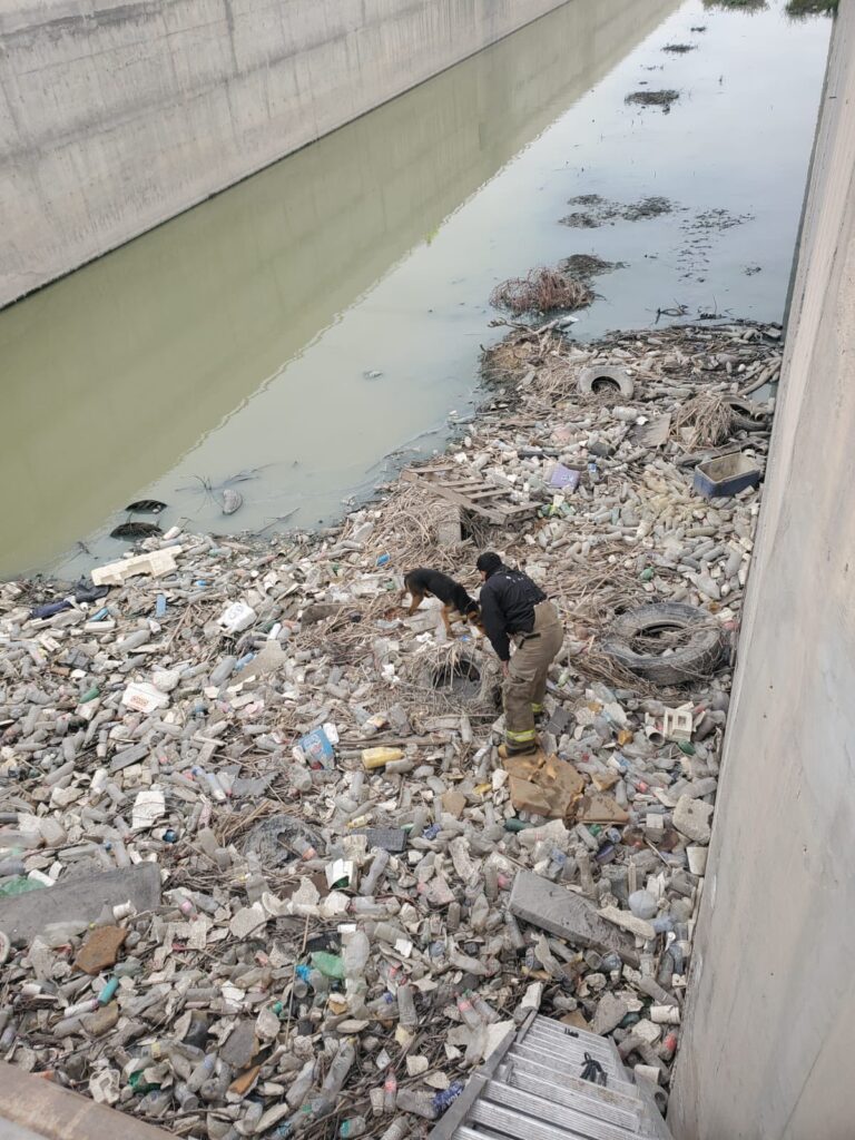 Salvan a perrito atrapado en canal de drenaje