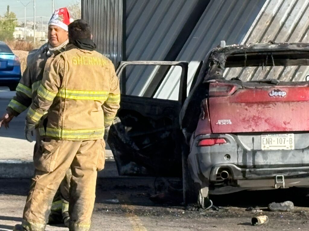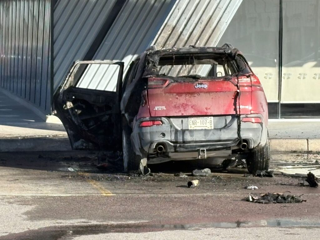 Esta mañana se reportó el incendio de una camioneta que se encontraba estacionada al exterior de un banco.