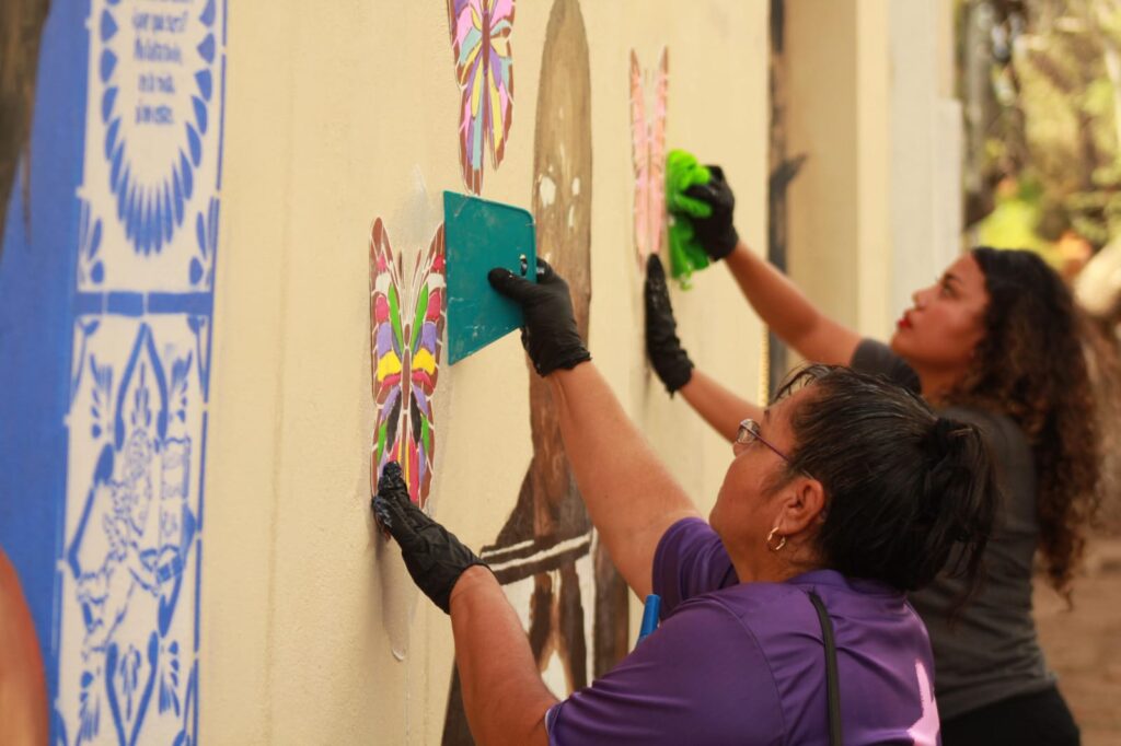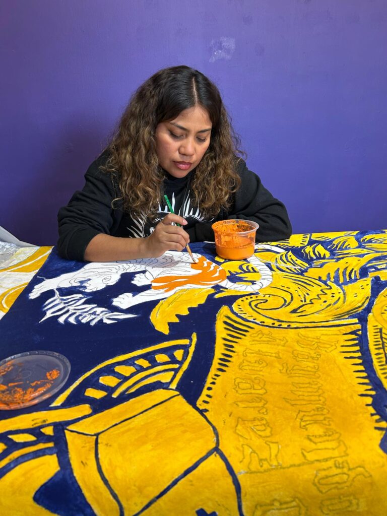 La labor de Ana no se limita al acompañamiento técnico, sino que incluye un apoyo emocional y la creación de espacios seguros. Por ello, trabaja con la técnica de muralismo portátil, en la que el mural se realiza sobre paneles de tela y posteriormente se fija al muro, lo que permite que las madres trabajen en un entorno donde se sientan seguras para crear.