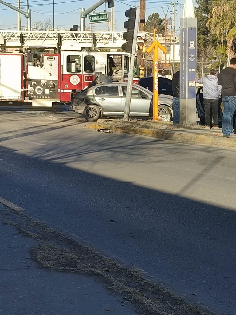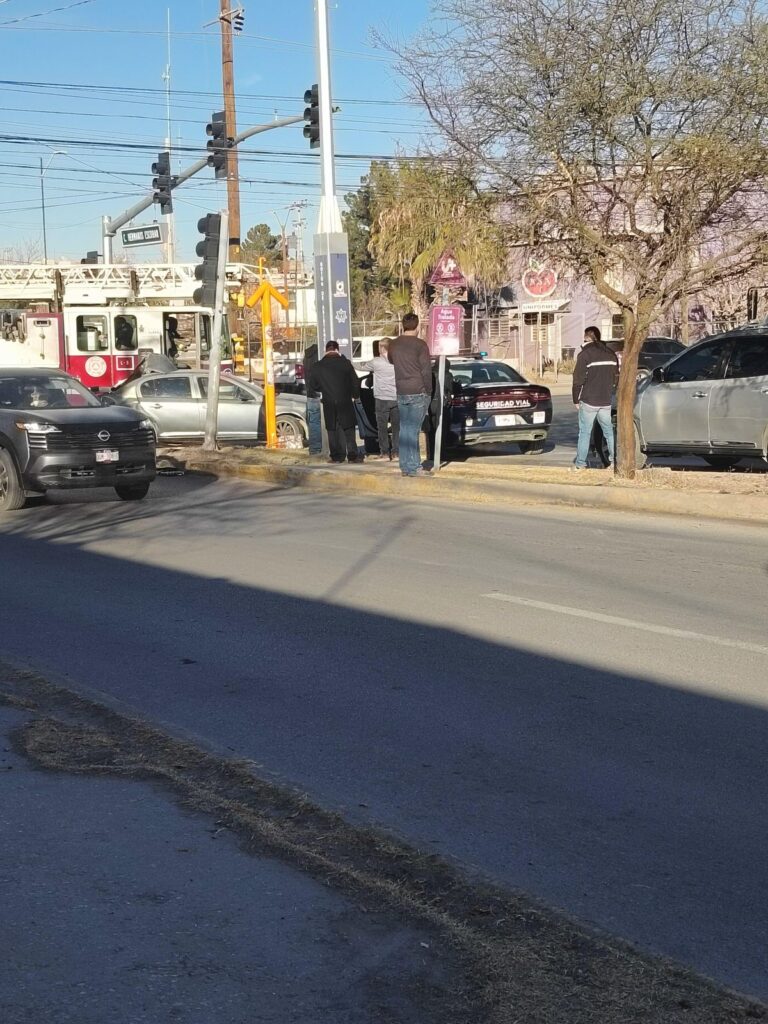 Un fuerte percance vial se registró esta mañana en el cruce de las calles Hermanos Escobar y Plutarco Elías Calles.