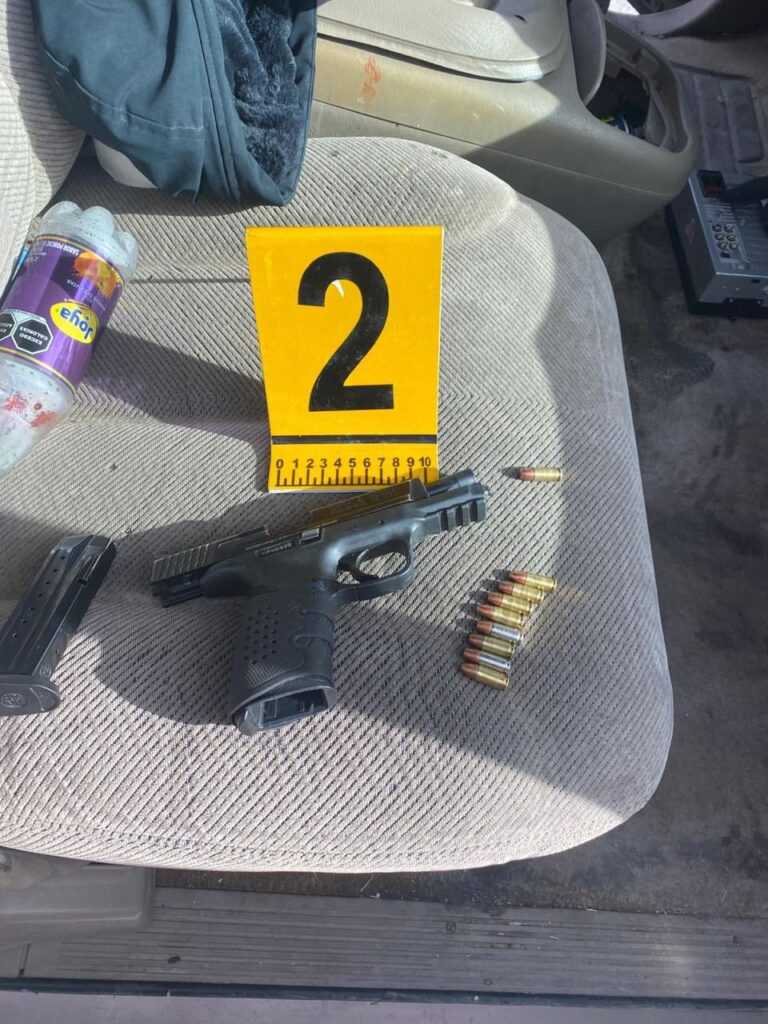 Tras realizar una inspección al interior de esta unidad, se localizó un arma de fuego con un cargador abastecido y varios cartuchos útiles.
