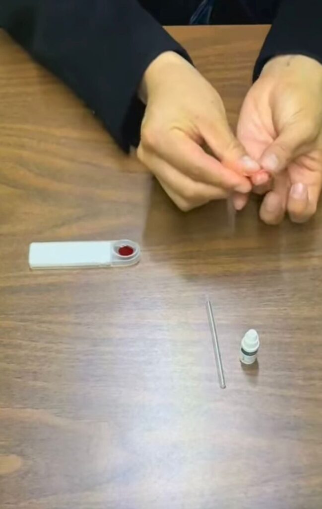 El kit para realizar la prueba cuenta con una pipeta, toallitas con alcohol, una lanceta, solución amortiguadora, una banda adhesiva y un documento con las instrucciones de uso, el proceso puede tomar de entre 15 a 20 minutos.