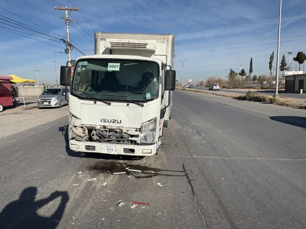 Un percance vial se registró esta mañana en donde se vieron involucrados una camioneta comercial que transportaba leche y una camioneta que era conducida por personal del municipio en color blanco, esto en la carretera Juárez-Porvenir y Hermenegildo Luna.
