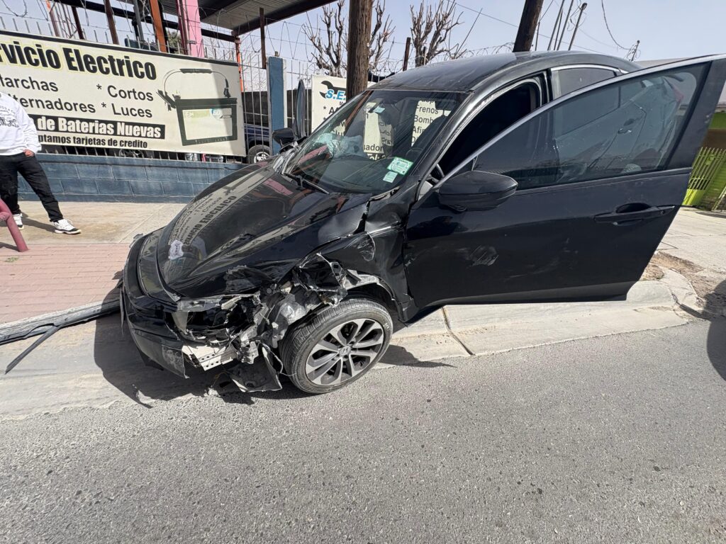 Debido a esta situación se perdió el control del vehículo Honda negro, el cual terminó encima de una base metálica que se utiliza como banca en la acera peatonal.