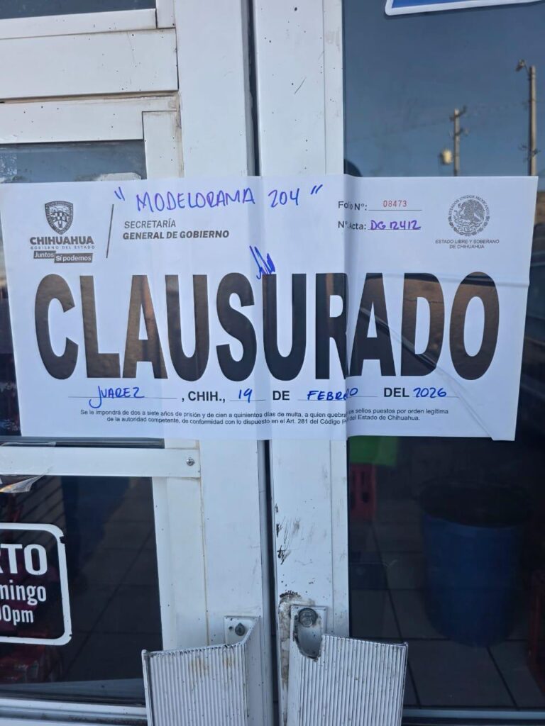 En Ciudad Juárez, las clausuras se aplicaron a la tienda de abarrotes “San Judas Tadeo”, por violación de giro y falta de revalidación 2025; “Modelorama 204”, “Chi Six Súper Lila” y “Súper Six Agua Prieta”, estas últimas por violación de giro.