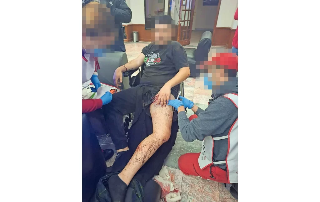 Presentaba una herida de bala en el muslo y una fractura en la pierna. Paramédicos lo atendieron en el lugar antes de ser trasladado.