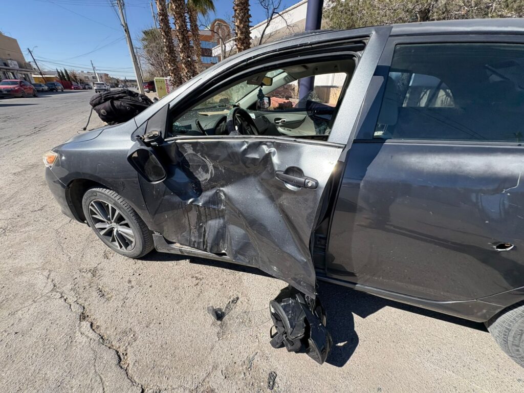 El accidente ocurrió en la intersección con las calles 21 de Marzo y Simón Navar. Según los primeros informes, la víctima circulaba de sur a norte en su carril de baja velocidad, cuando un automóvil gris lo impactó con una violencia tal que el parabrisas y la puerta lateral del vehículo quedaron destrozados, mientras que la motocicleta terminó convertida en chatarra.