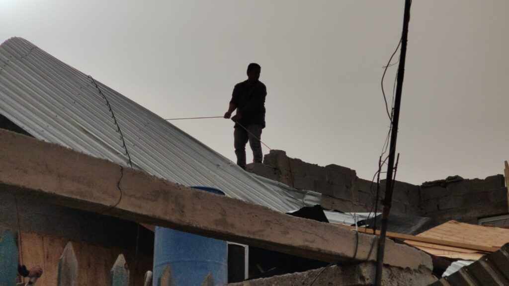 La intensidad del viento arrancó el techo de una casa en la colonia Puerto La Paz, en el cruce de las calles Ensenada y Ramón Rayón.