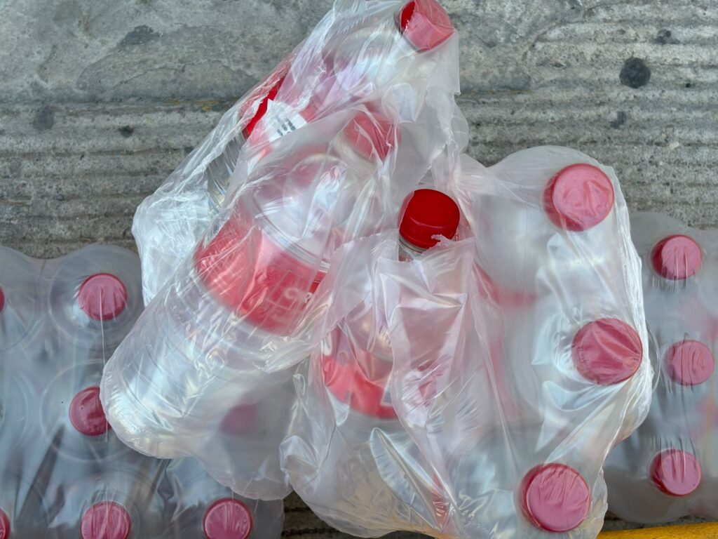 “Lo hacemos como apoyo a las chicas por todo lo que están haciendo por las mujeres”, comentó mientras entregaba las botellas.