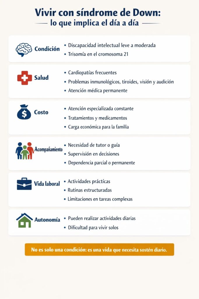 Vivir con síndrome de Down no empieza con el diagnóstico, sino con todo lo que viene después. Desde el nacimiento, las personas con esta condición y sus familias enfrentan una vida marcada por atención médica constante, gastos elevados, aprendizaje diferenciado y la necesidad permanente de acompañamiento para sostener su día a día.
