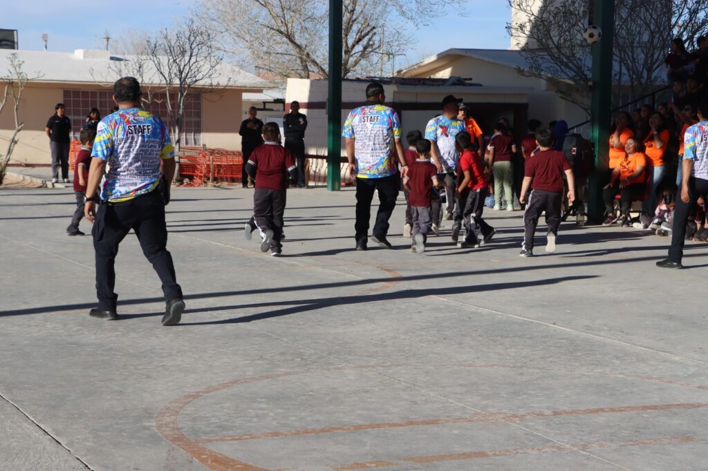 Policías municipales conviven y juegan fútbol con alumnos de primaria en Ciudad Juárez