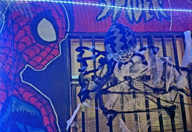 La casa sorprende con una decoración completamente renovada con un esqueleto con movimiento de tres metros de altura, cuyas manos se mueven y atraen todas las miradas