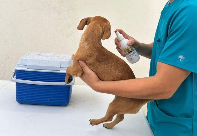 Los médicos especializados aplican de manera gratuita el spray contra las garrapatas, ajustado al peso y talla de cada mascota