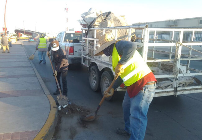 Personal de la Dirección de Limpia del Municipio hizo barrido, así como el retiro de tierra de arrastre y corte de maleza, entre otras cosas