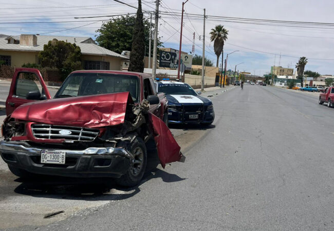 La camioneta civil resultó con daños considerables en la parte frontal, mientras que la patrulla presentó daños menores