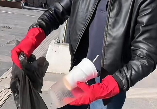 Su iniciativa ha logrado que personas que pasan por el lugar se unan espontáneamente a ayudarle