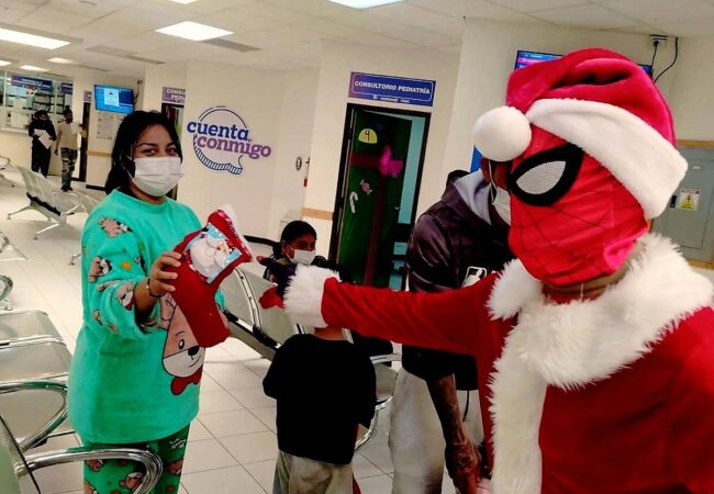 El Spiderman juarense llevó alegría con detalles a pequeños de un hospital